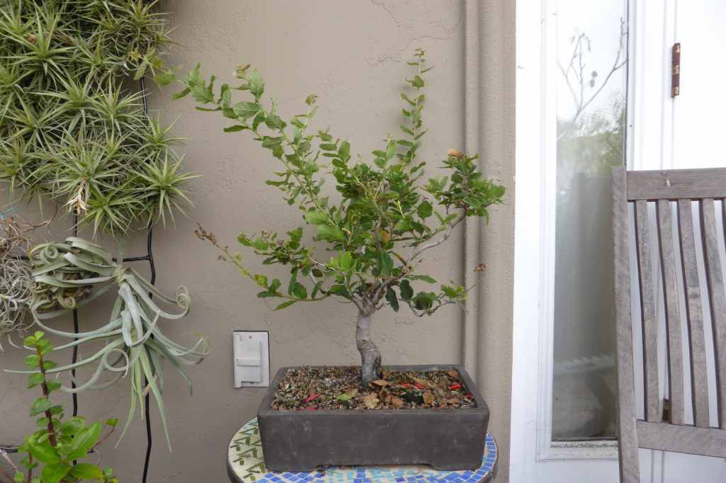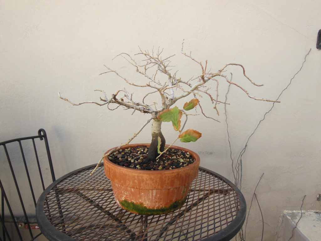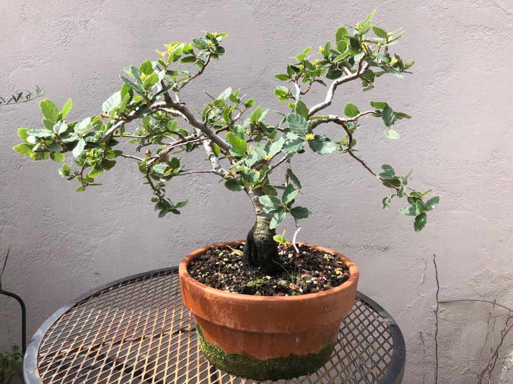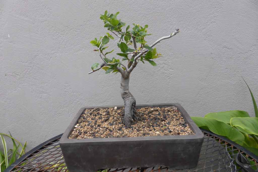 The tree was purchased as a pre-bonsai from Kuma Bonsai nursery in San Diego in 2013. New growth was insufficiently pruned in the first years after purchase and it was very spindly until spring in 2016, when it was pruned back hard. I nearly lost it after a hard root-pruning in winter 2018 but it recovered.