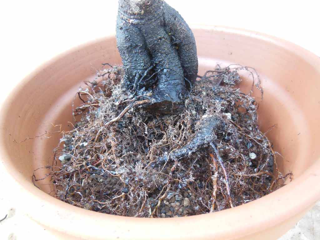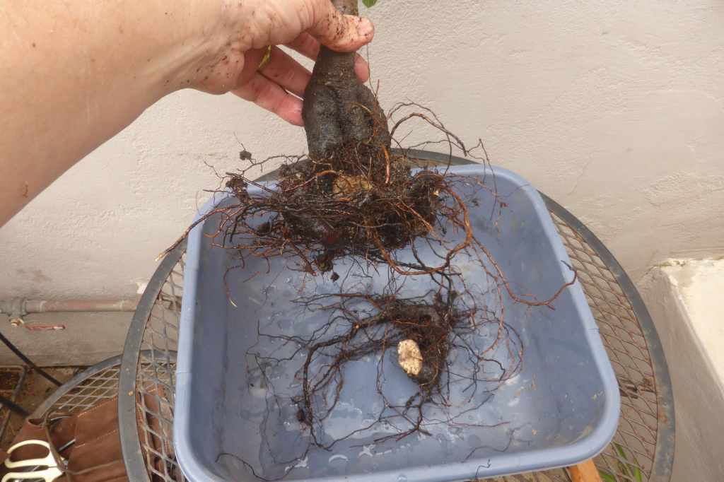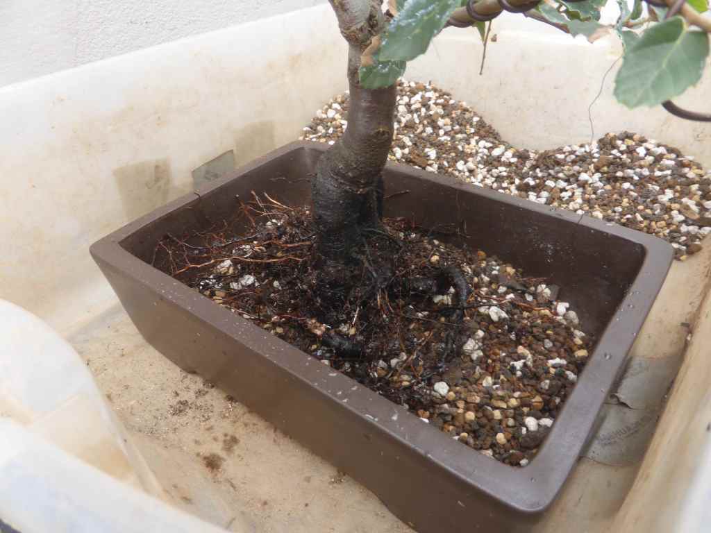 Bare-rooted in new pot (this is the repotting that eventually caused a near-death experience for the tree).