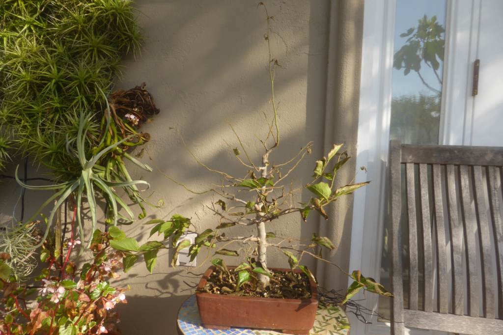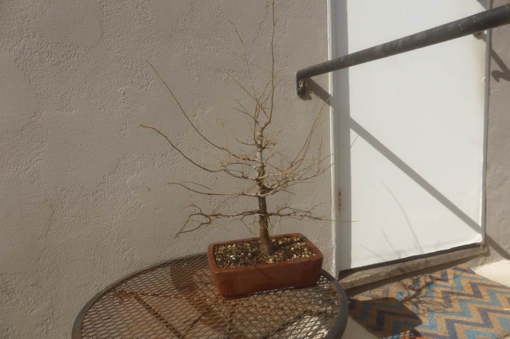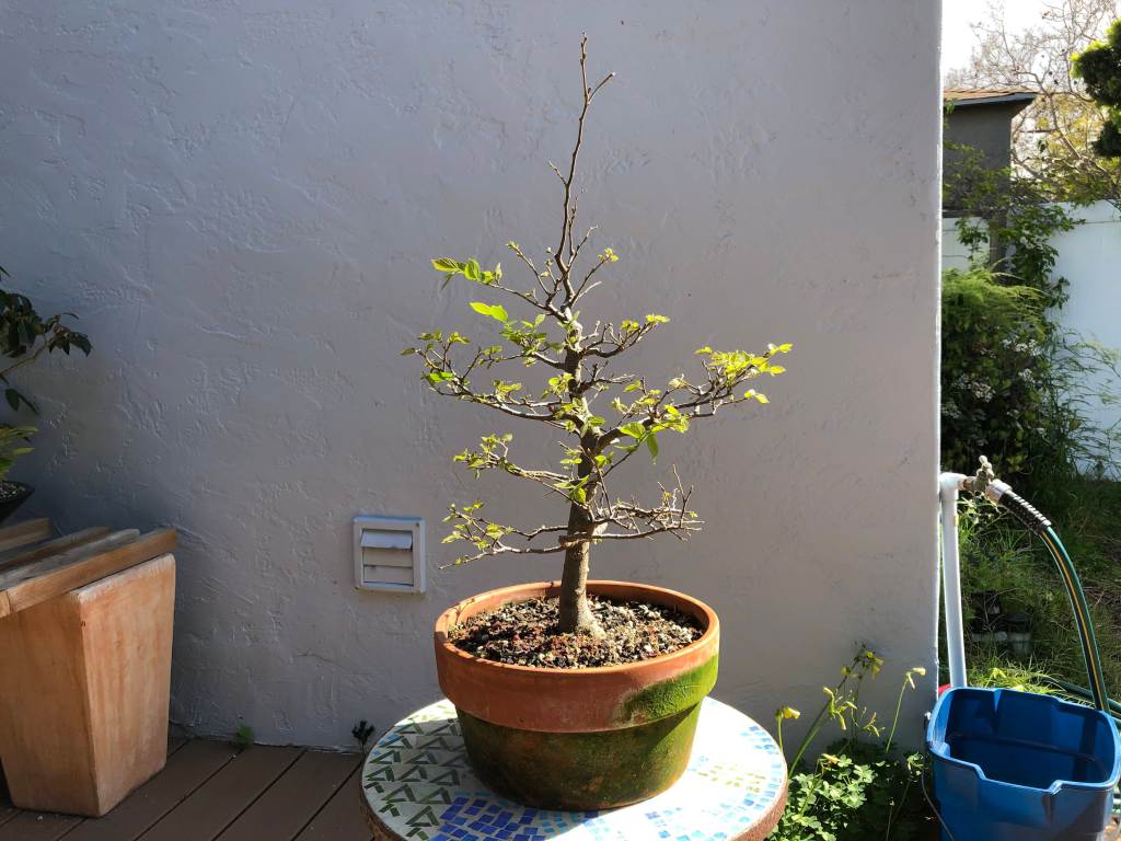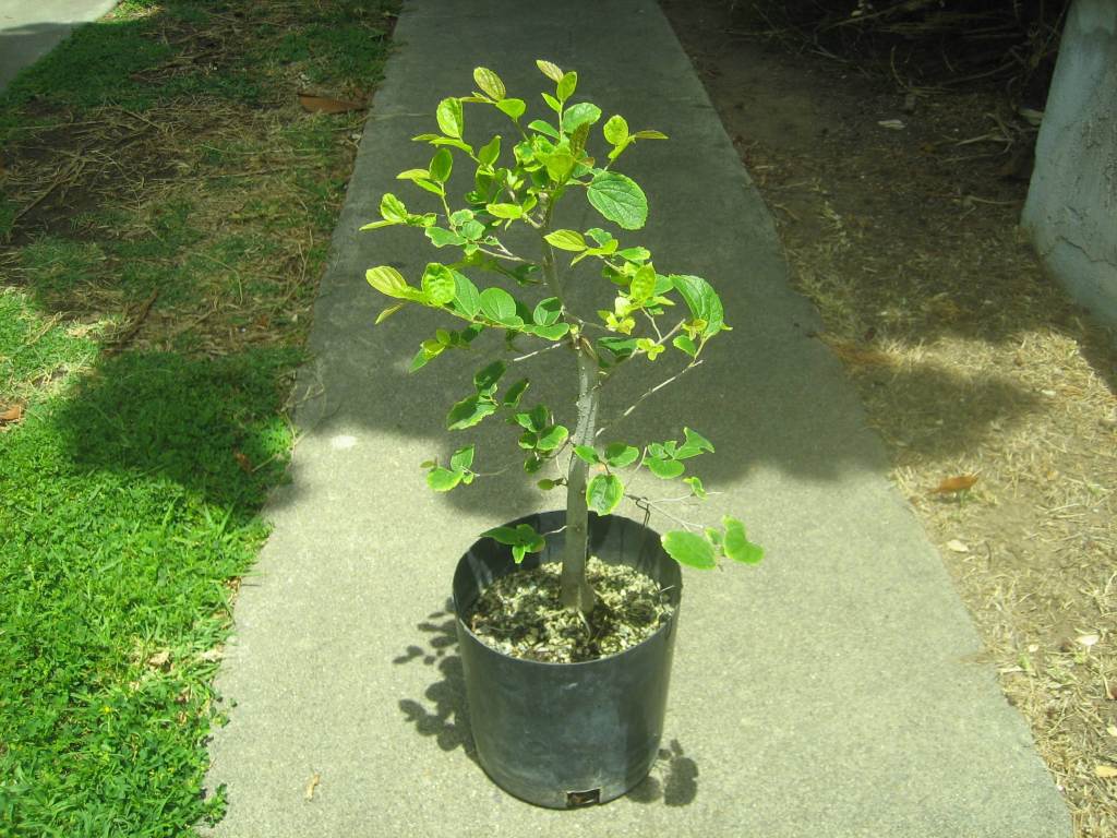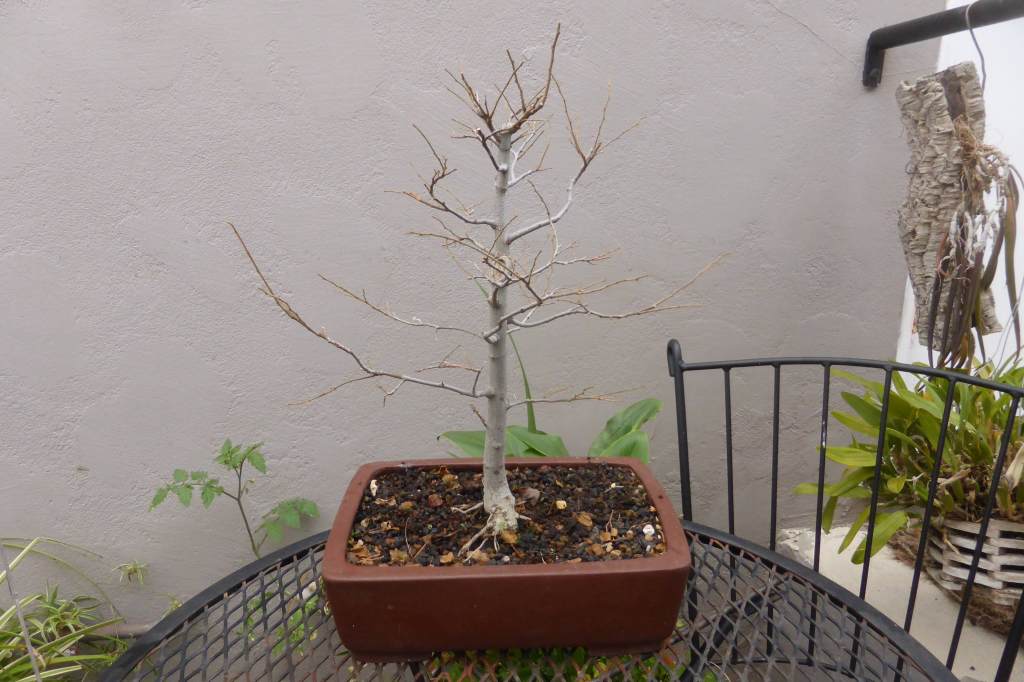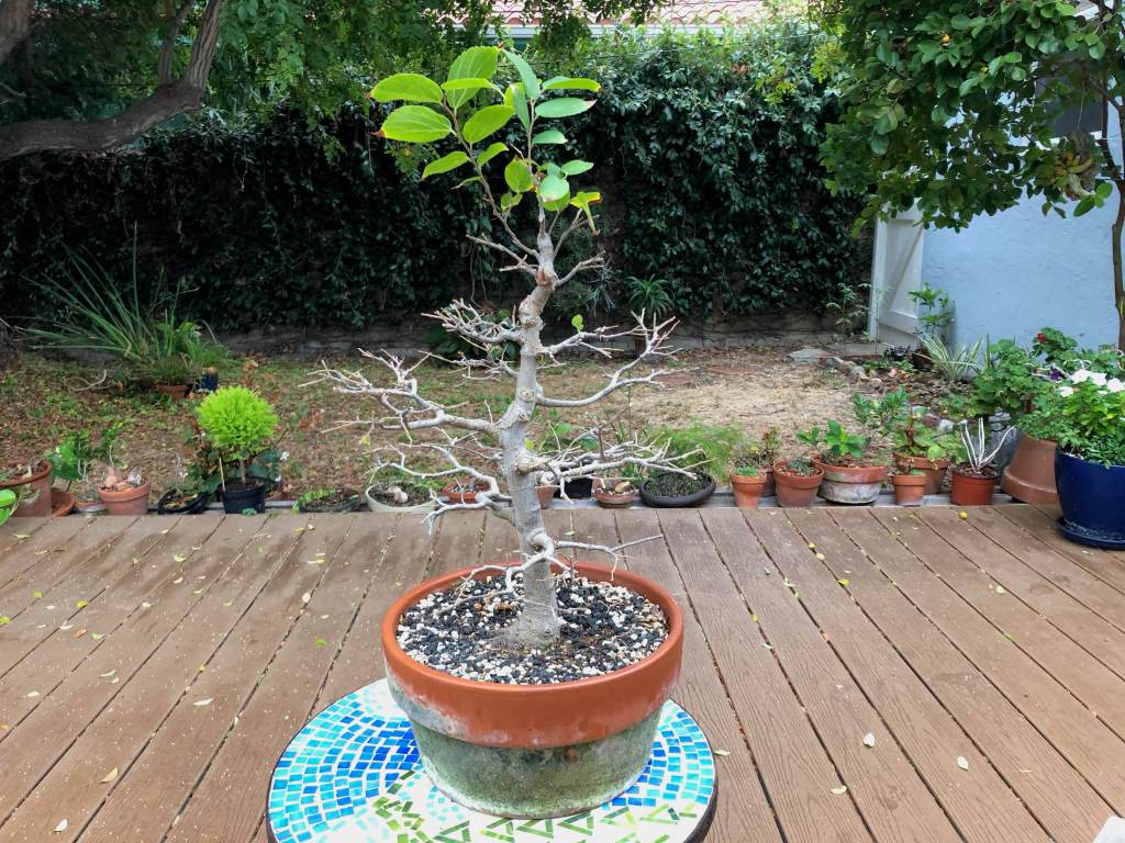 The tree after two years. The first several years the tree lost leaves in early summer and had a second flush in mid-summer. I think this was because I didn’t water enough in spring.