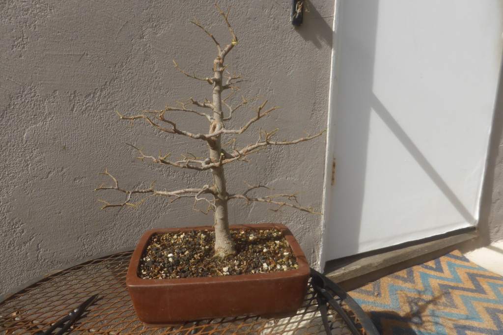 I first posted this tree on this blog February 6, 2019. In the year and a half since then, I have been working on widening the trunk and root base and increasing the branch ramification.