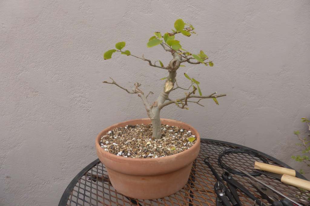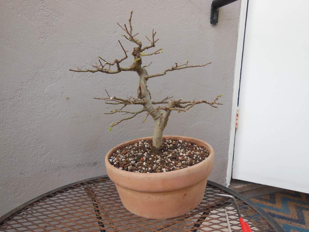 The tree in January with no new growth yet. This would have been a good time to begin selecting branches I wanted to keep and those to eliminate.