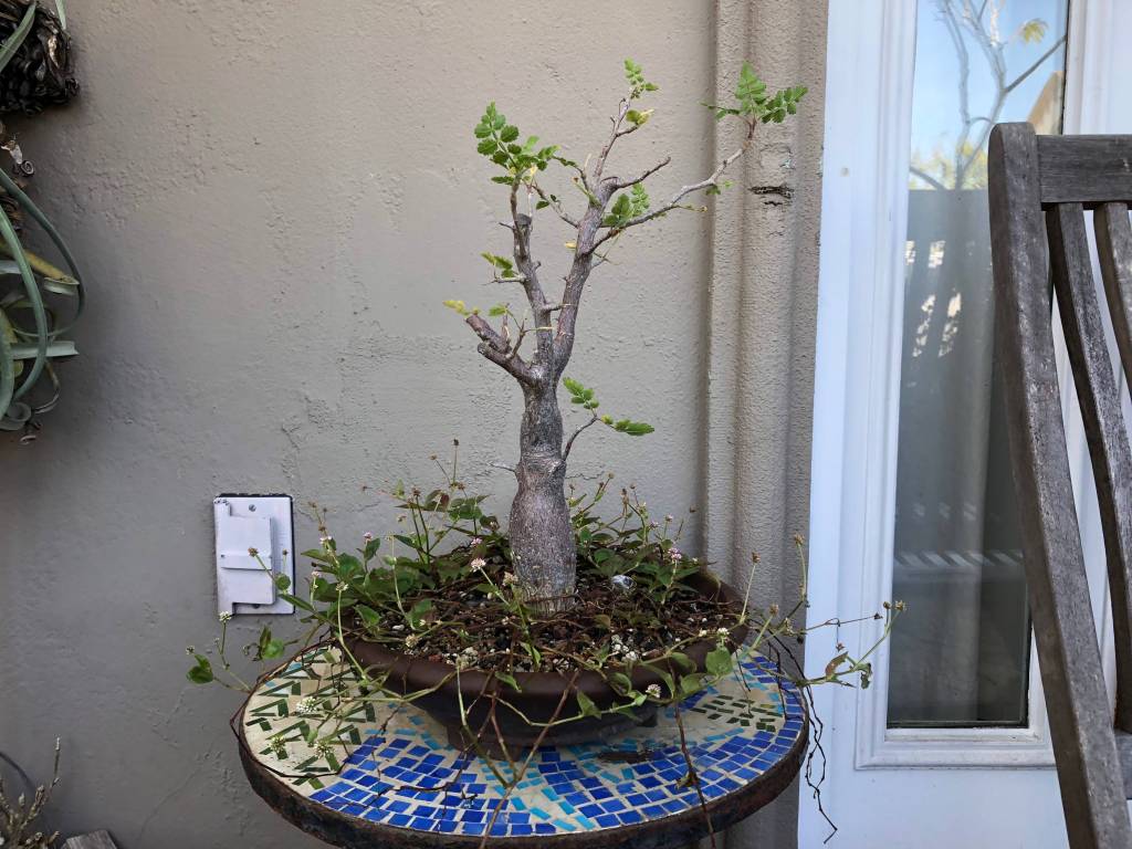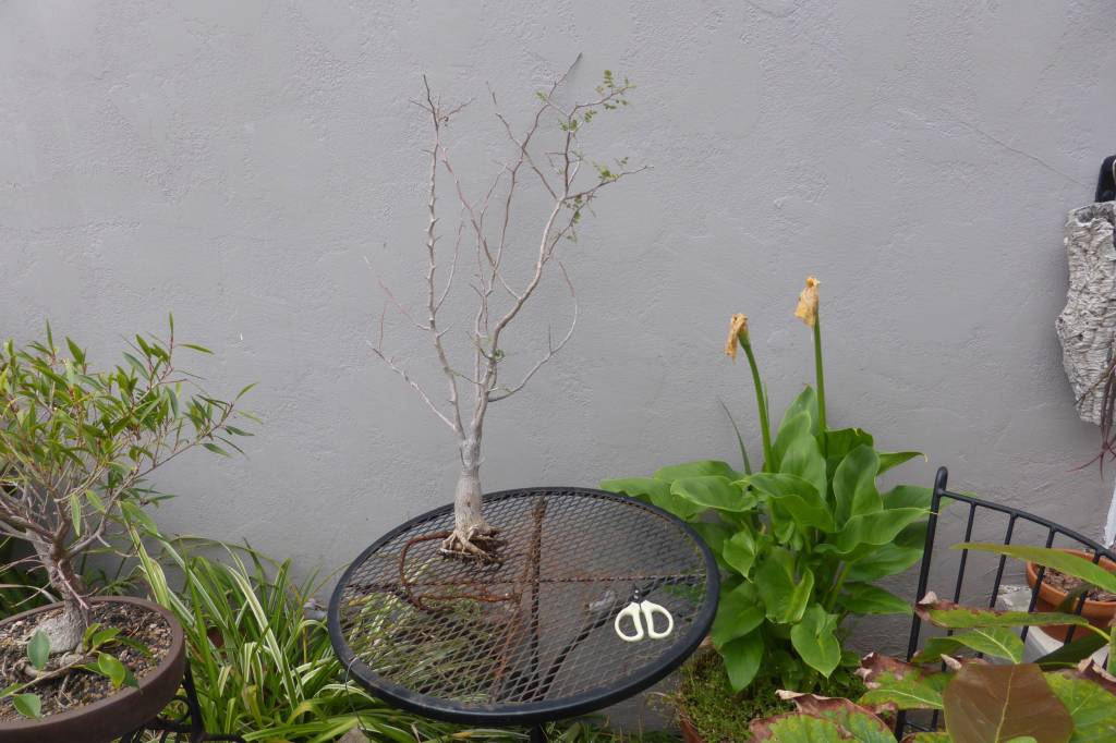 Tree on the bonsai benches with new growth sprouting.