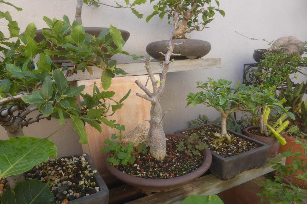 Potted and sprouting on the bonsai bench.
