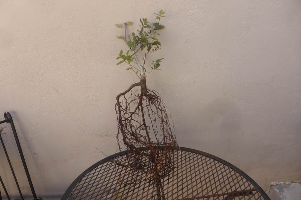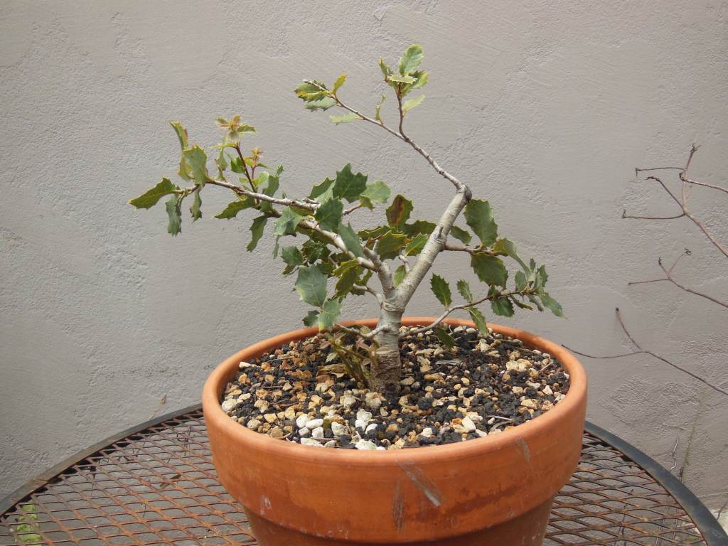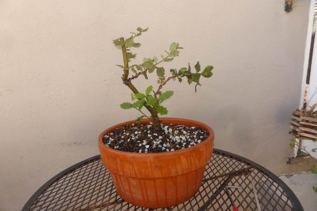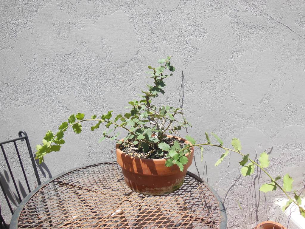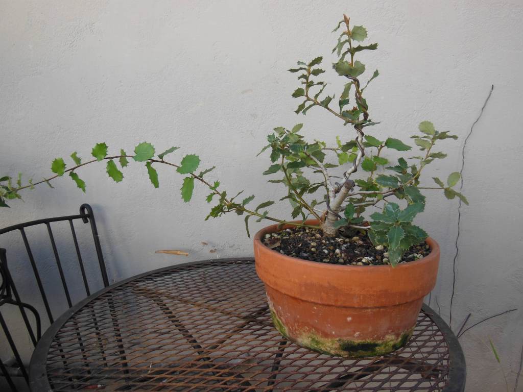 The tree with unpruned branches to thicken them at the base. The acorns are Quercus chrysolepis collected during a trip to local San Diego County mountains. See their current status later in this post.