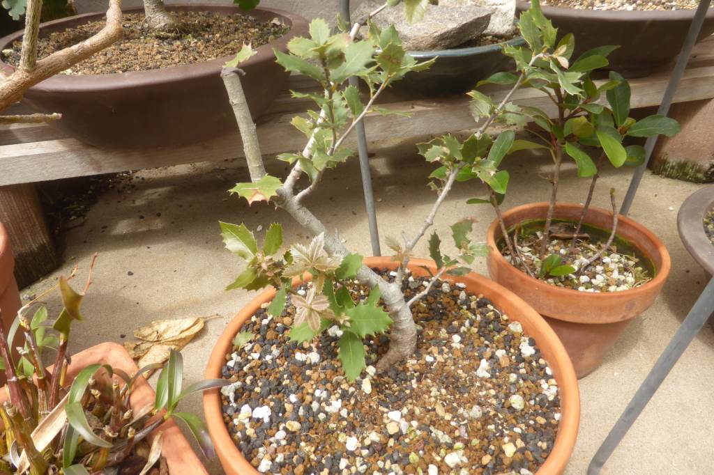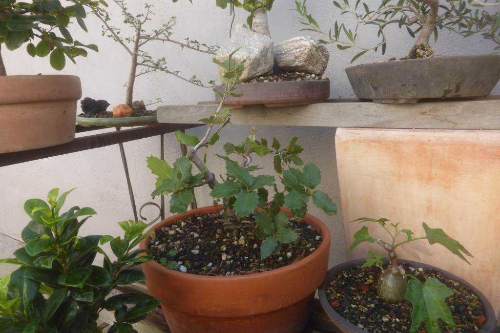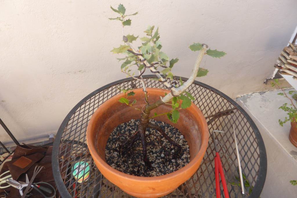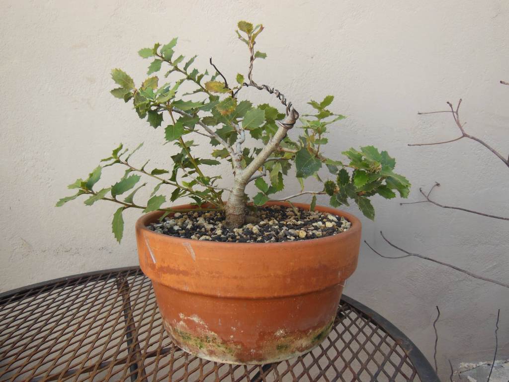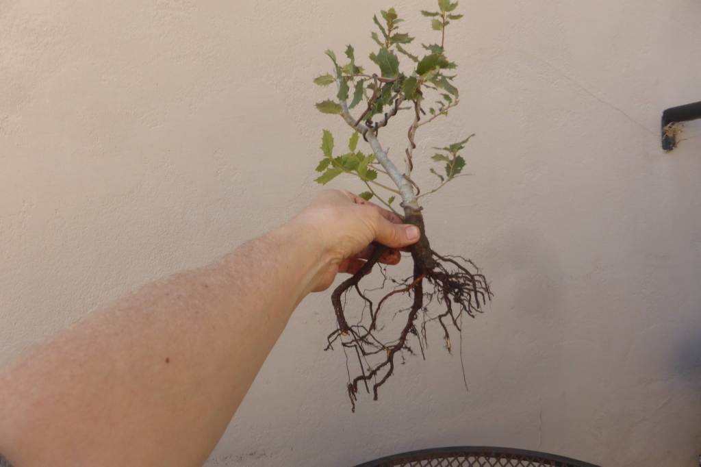 The tree with unpruned branches to thicken them at the base. The acorns are Quercus chrysolepis collected during a trip to local San Diego County mountains. See their current status later in this post.
