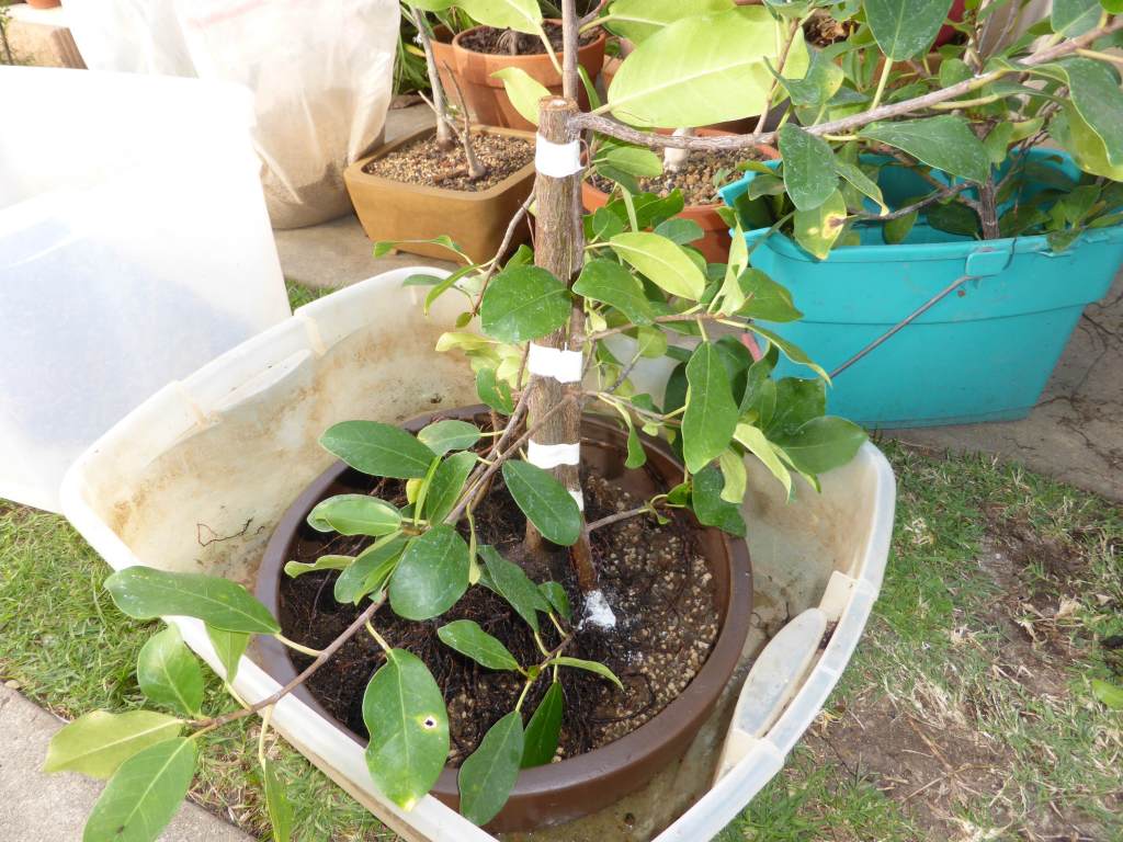 Similarly to the Tiger bark ficus described in the January 2019 post of this blog (see https://beginbonsai.net/2019/01/11/tiger-bark-ficus-ficus-microcarpa/), planting cuttings from this strangler fig have provided a number of new trees for me. One of these was the F. natalensis described at https://beginbonsai.net/2019/09/08/african-strangler-fig-ficus-natalensis/ and at https://beginbonsai.net/2019/09/28/african-strangler-fig-ii-ficus-natalensis/.