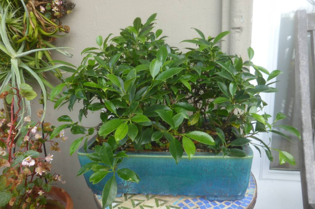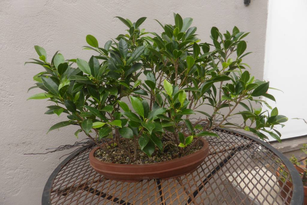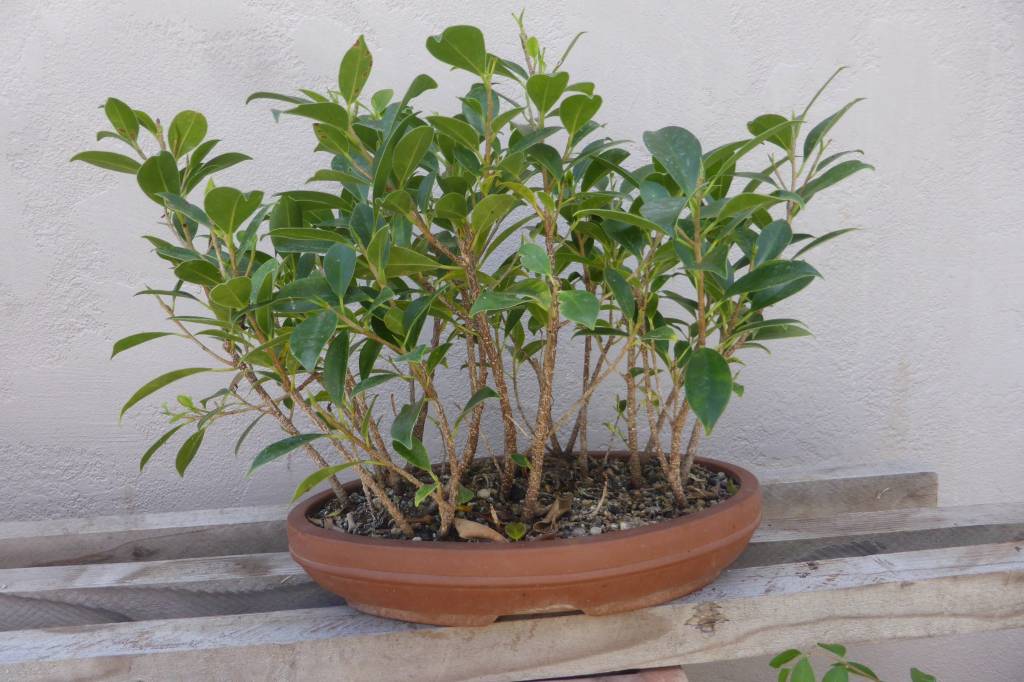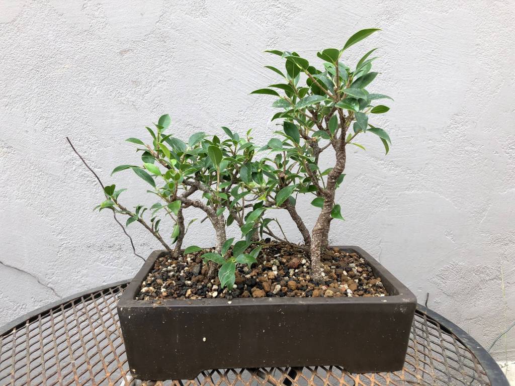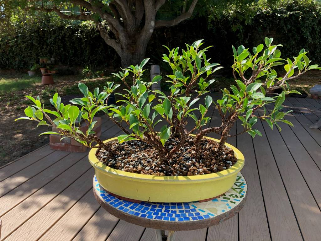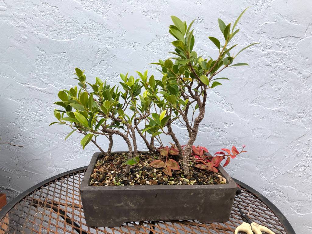 I started this forest from small clippings placed in a pot 6 years ago. I separated out some of the trees to develop as individuals along the way, but maintained a core group as a forest, wiring, pruning and repotting them into larger pots as they developed. Today I potted them up once again into a yellow Japanese pot I bought from Wigert’s nursery. They are overpotted for now, but I expect they will rapidly grow into their new space!