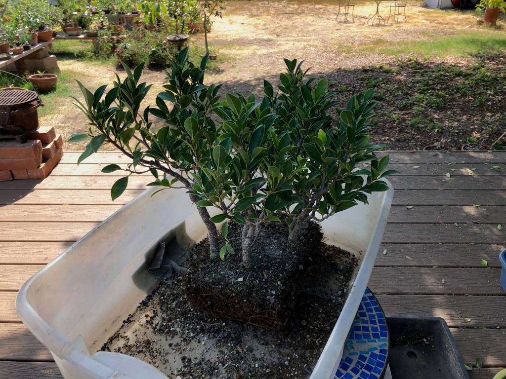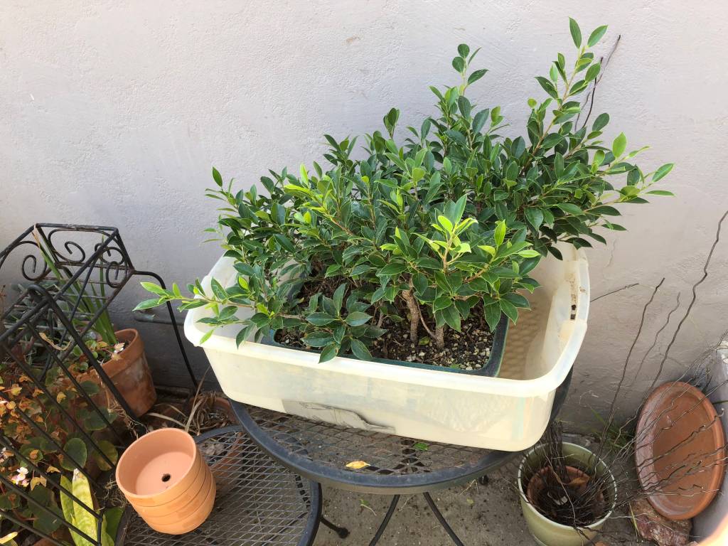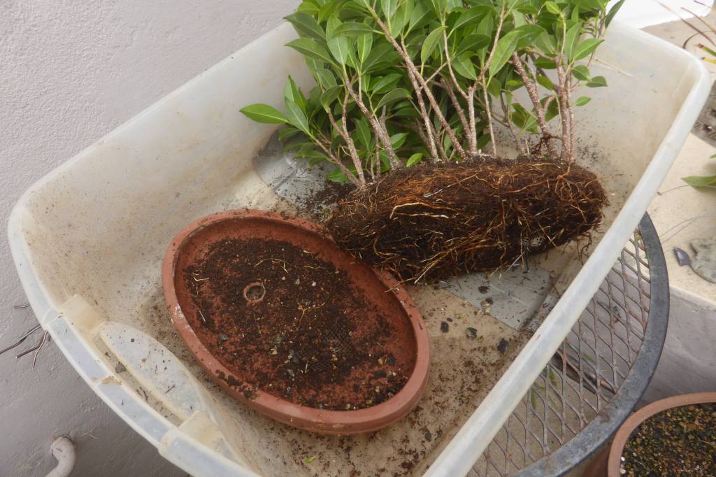Time for a repot. I separated some of the trees into the small terra cotta pots at the lower left.