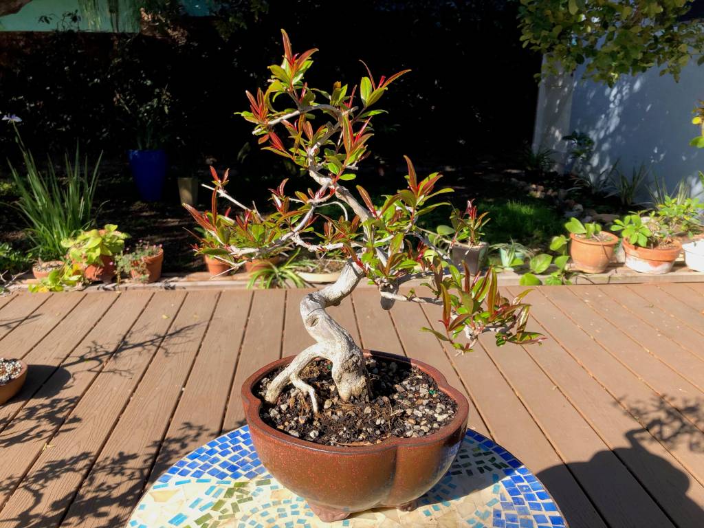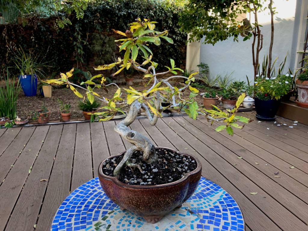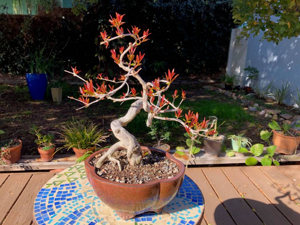 1. Thanks! I think the trunk is the tree’s best feature. The branches are a bit swirly so after growing them out to fatten everything up for a year or two I think I will cut them back shorter.