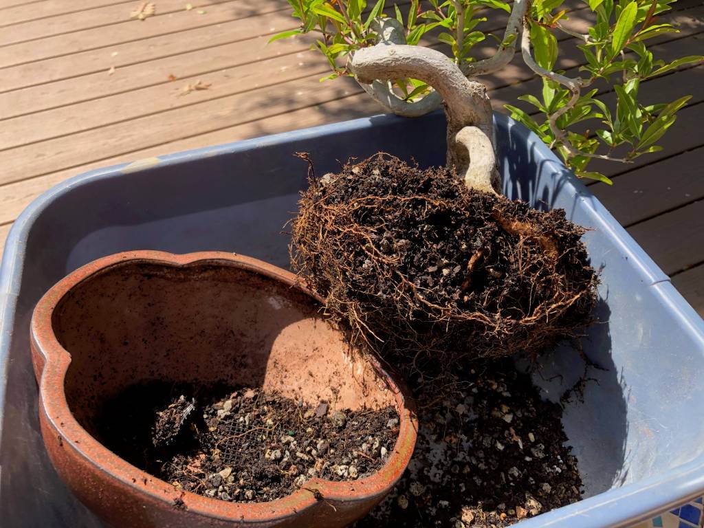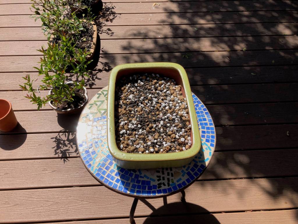 The new pot and bonsai soil. In this larger container I expect the tree will be able to put on more trunk and branch growth relatively quickly.