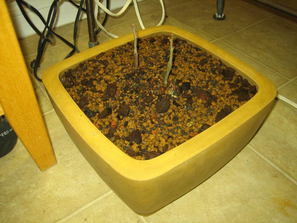 Big aspirations! I had a nice pot I wasn’t using, so I repotted the trees into it in spring. This would be their home for the next seven years.