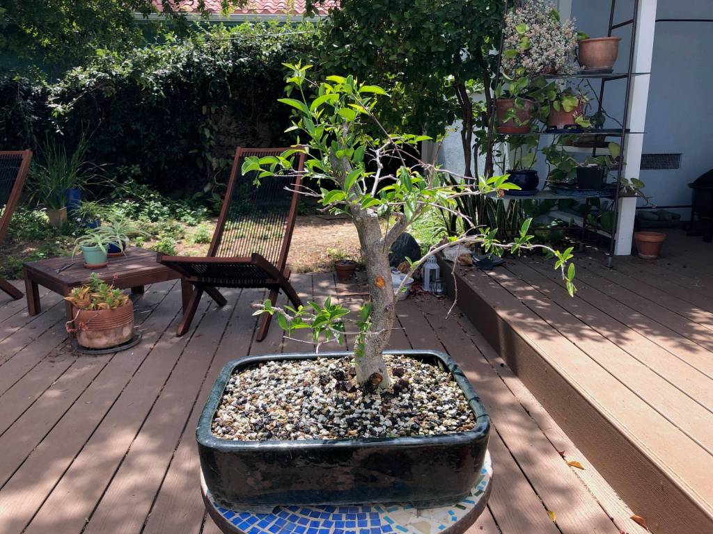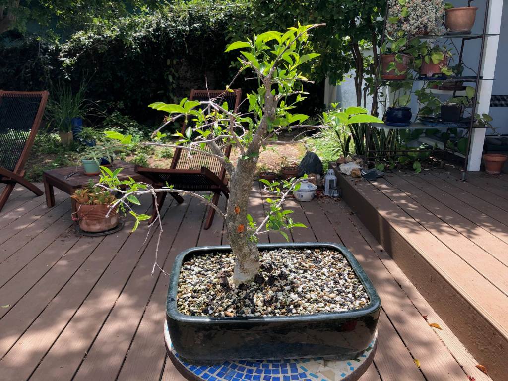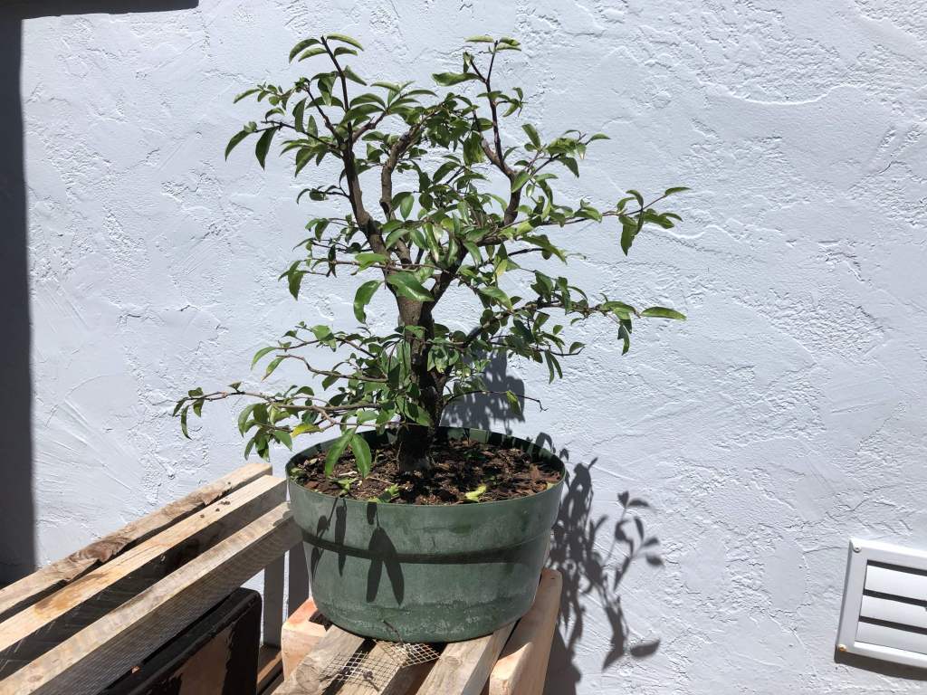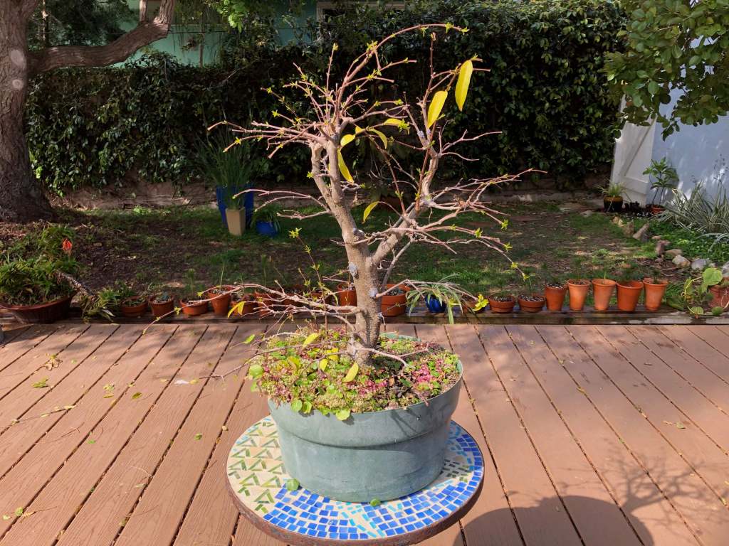 The tree the day it arrived from Wigert’s nursery a little over a year ago. Typically my tree progressions start small and get bigger over time, but this one already had a developed trunk so I removed most of its branches to make the trunk visible.