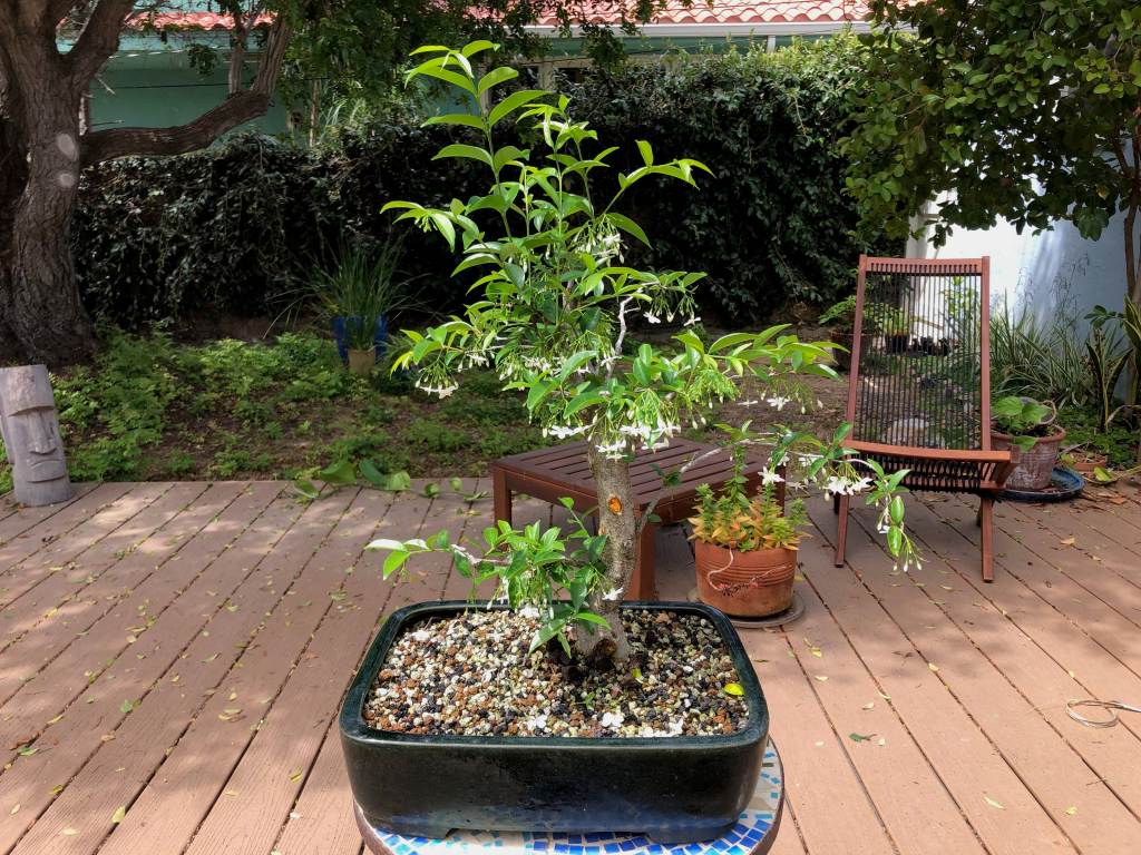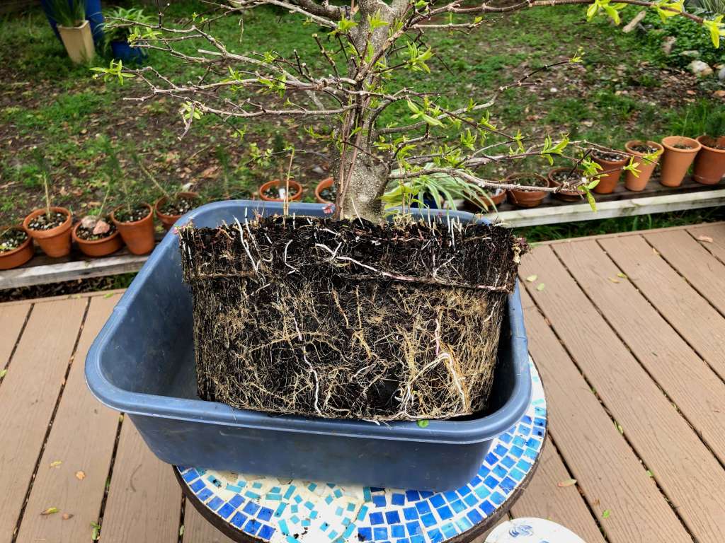 Positioning the tree in a new Japanese pot from Wigert’s Bonsai.