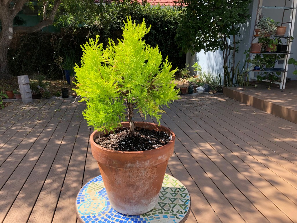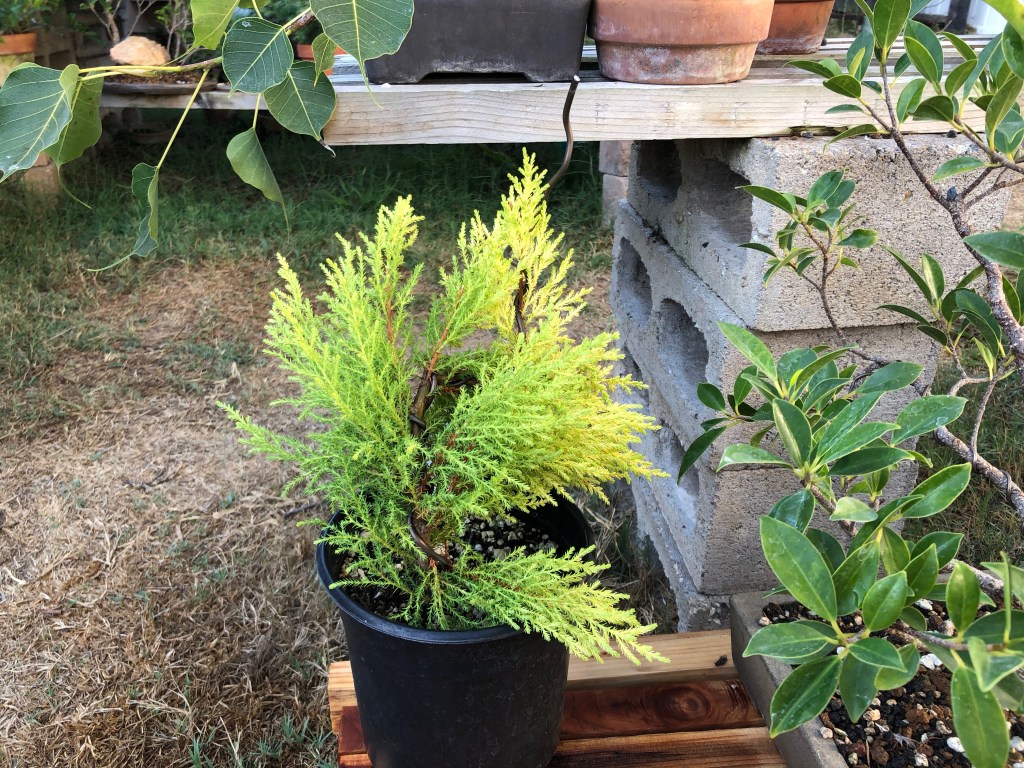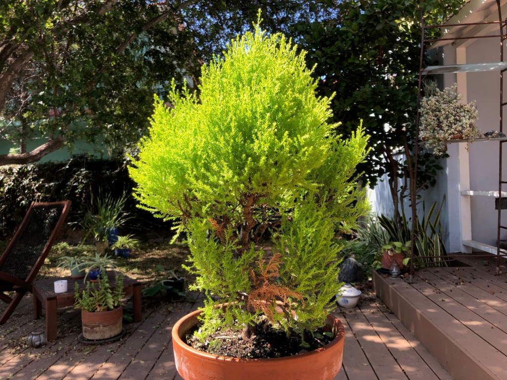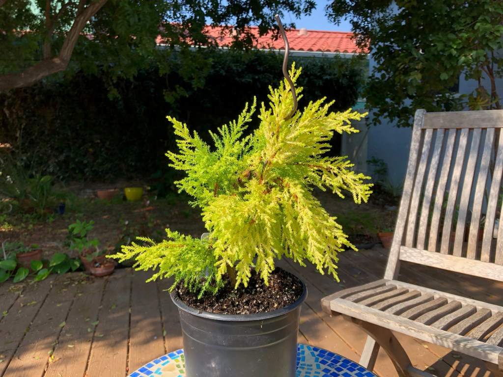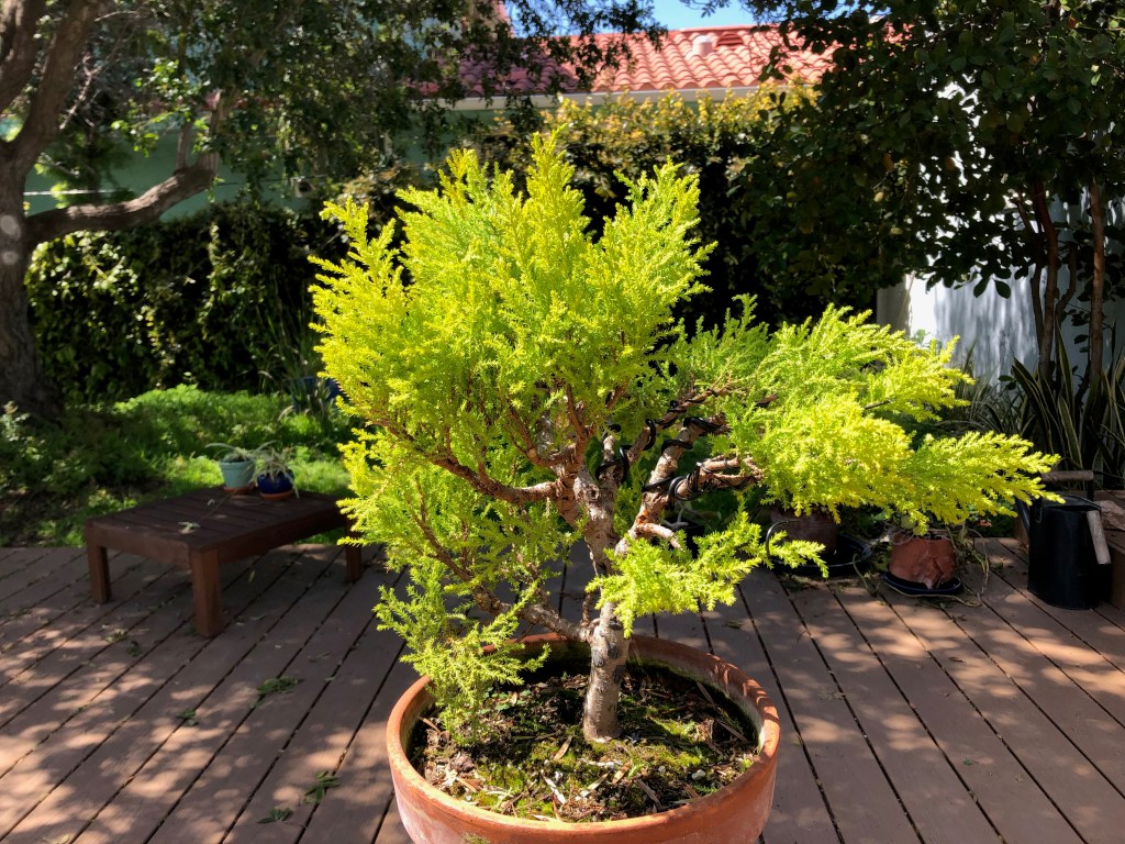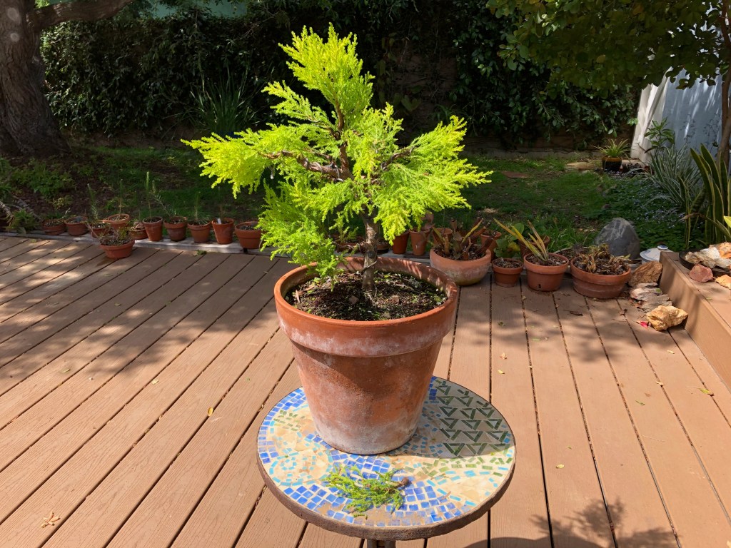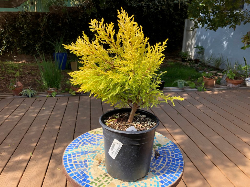 I bought this cypress from Walter Anderson nursery in San Diego for $19.99 on September 20, 2020. It is a variety of Monterey cypress, so I believe the current scientific name is Hesperocyparis macrocarpa, but the tree was labeled with the older genus name of ‘Cupressus’. I am pleased with its development in the 2 years and 4 months that I have been working with it.
