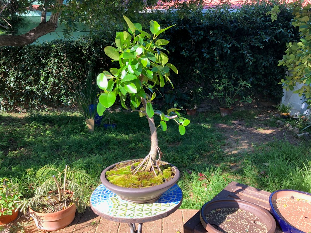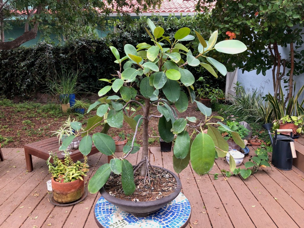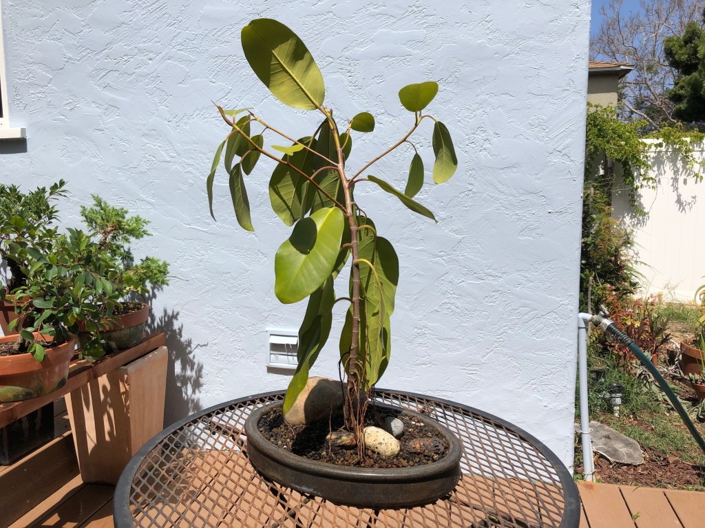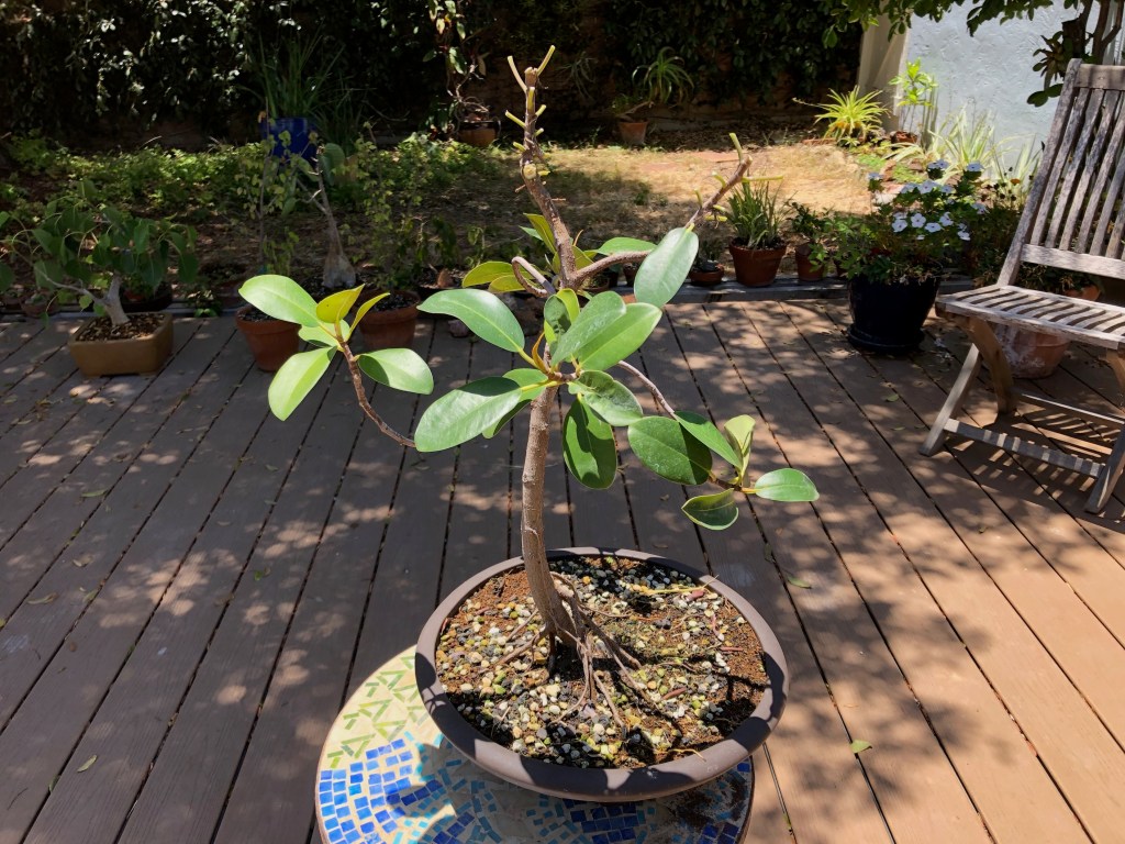 I started this Port Jackson fig as a cutting in 2016. This species is the most likely to produce aerial roots for me of the 8 species of ficus I am currently growing.
