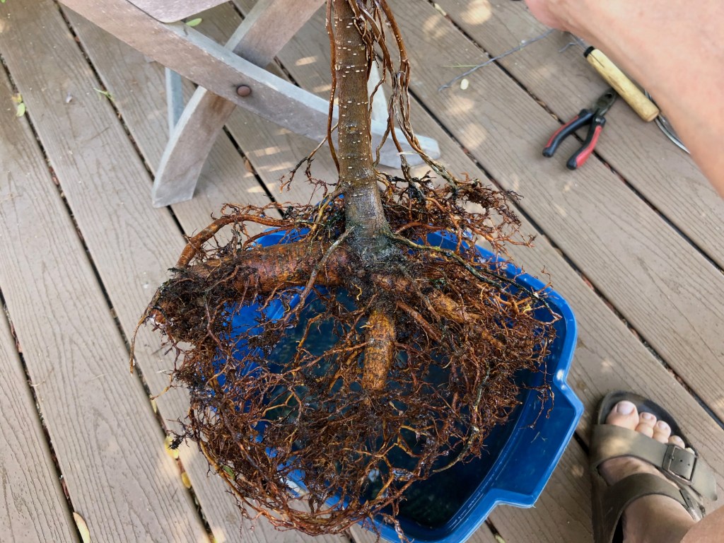 Bonus tree – This is the parent tree this morning. It shows that with proper defoliation the leaf size will reduce in this species. It’s too late in the season to defoliate the either tree again now, but I will defoliate both trees early next spring to allow for two or three defoliations over the summer.
