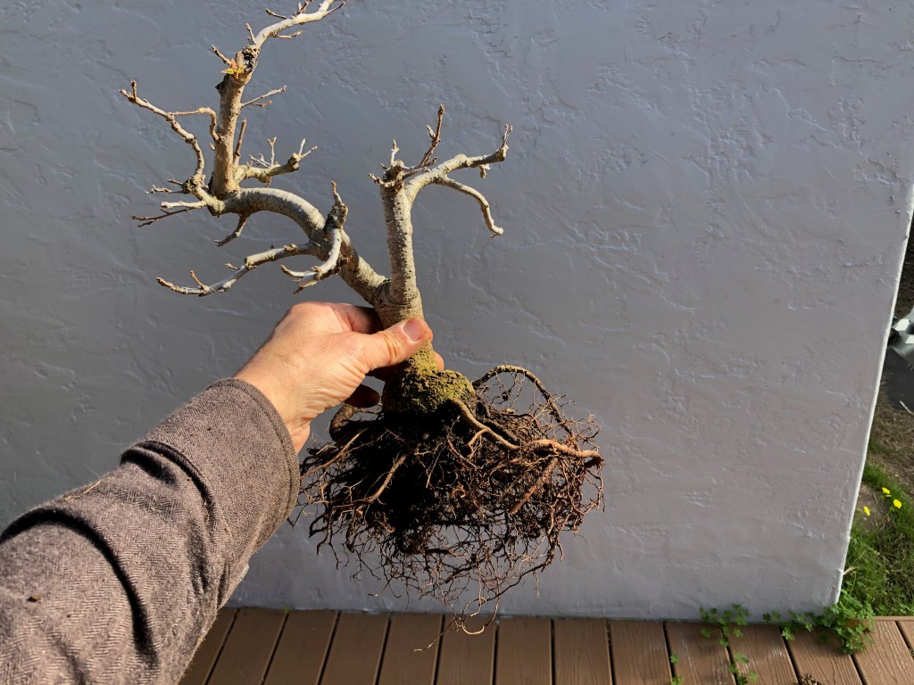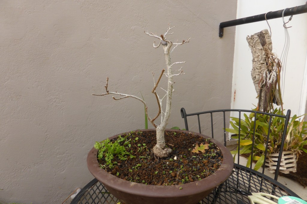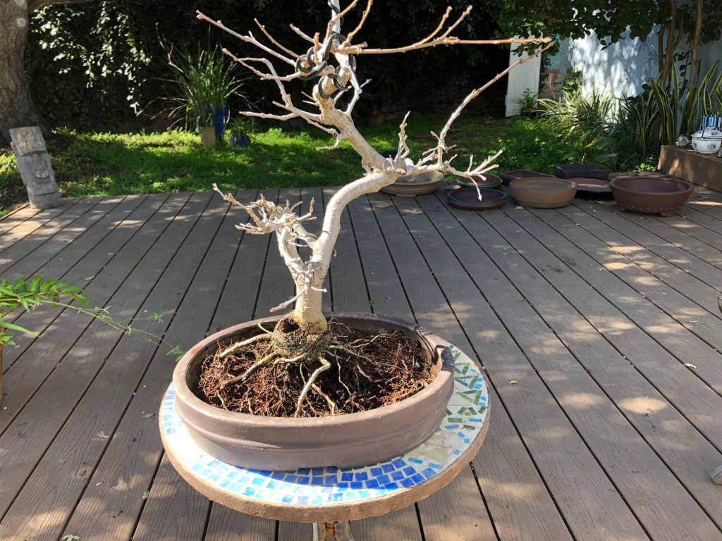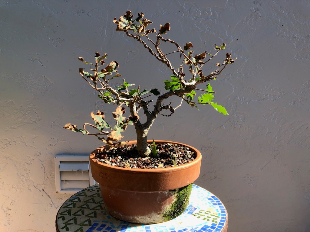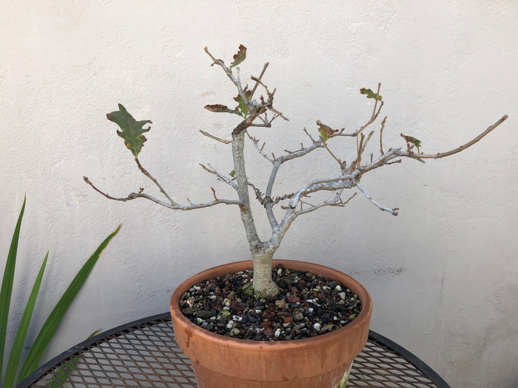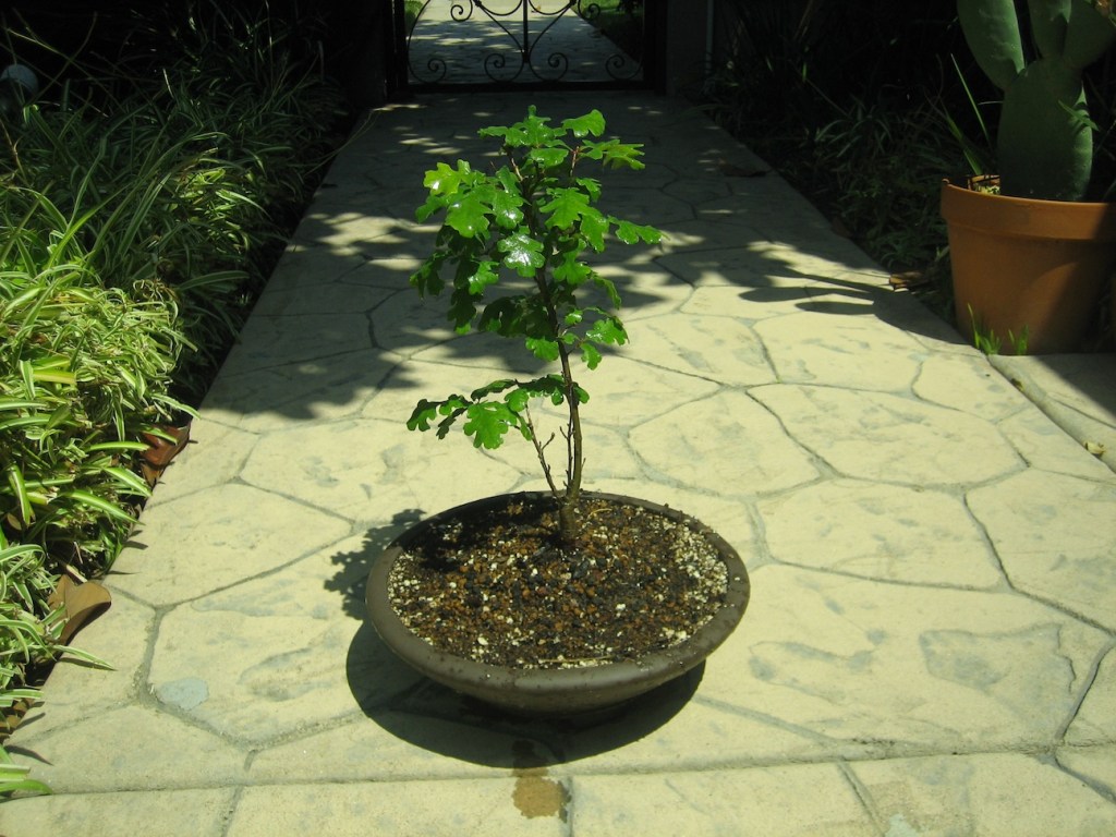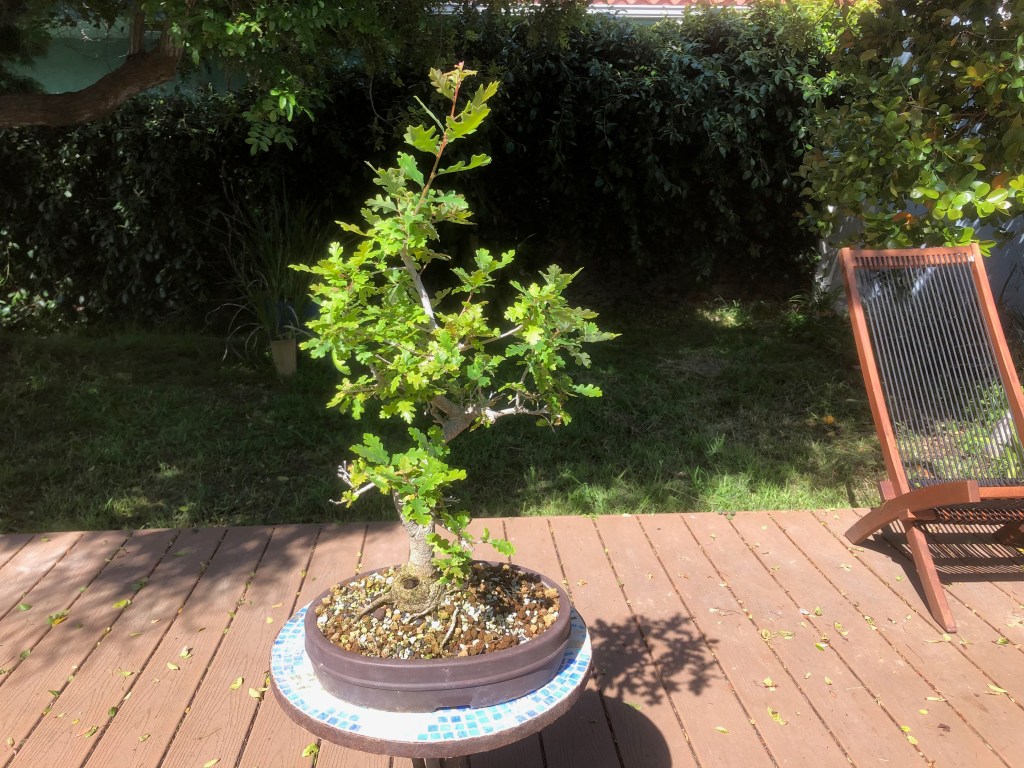 I bought this valley oak at Anderson’s Costa Nursery in San Diego on April 28, 2013, for $19.99. I later bought a second valley oak from another nursery in 2018, whose development I have already posted on this website (see https://beginbonsai.net/2023/10/05/oak-under-construction-valley-oak-quercus-lobata/ for the latest description of that tree).