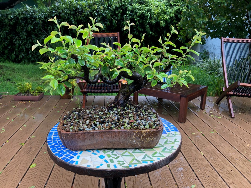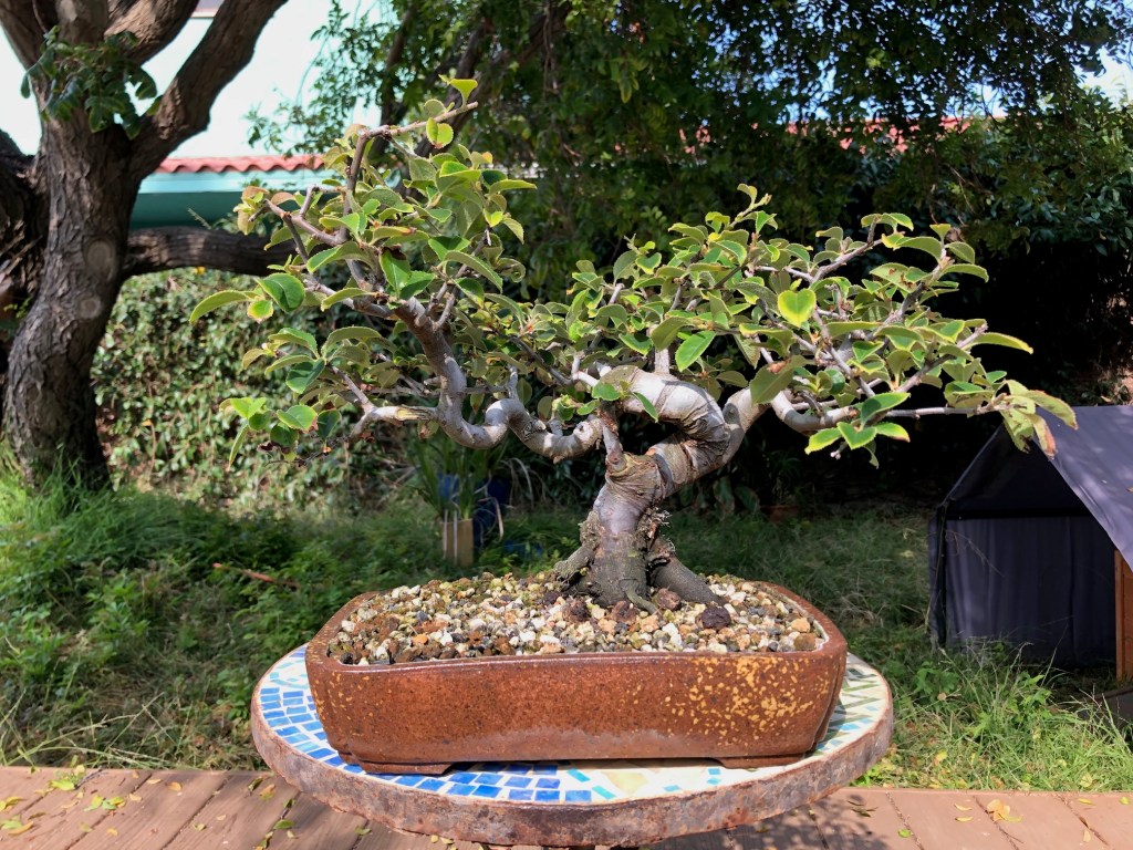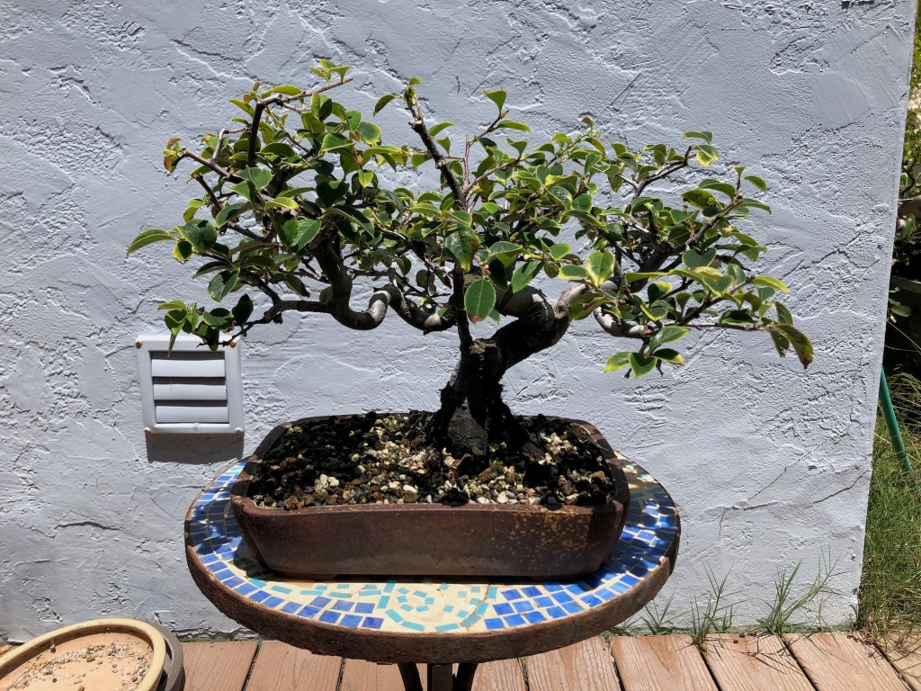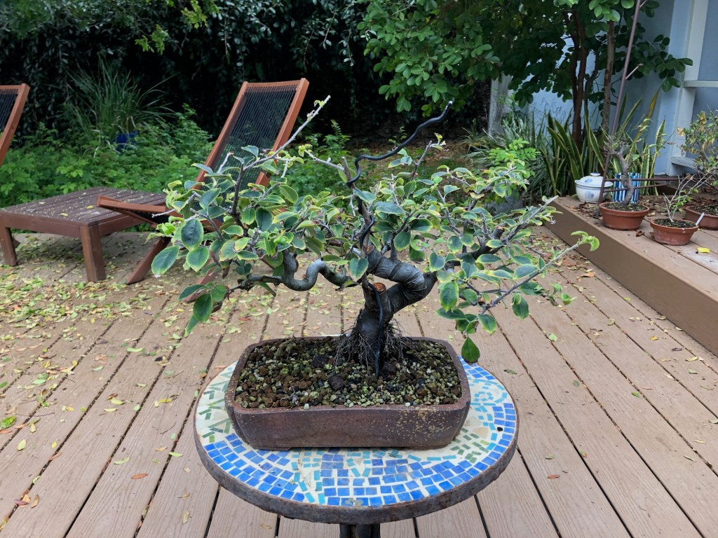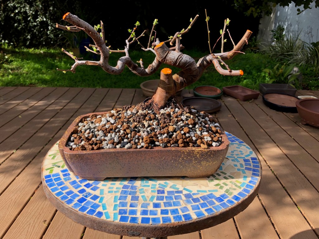 Third pruning of the season. I wasn’t sure what to do with the vertical trunk growing out of the lower stump. It is too straight for the rest of the design. I left it as a sacrifice branch to help close the old stump wound.