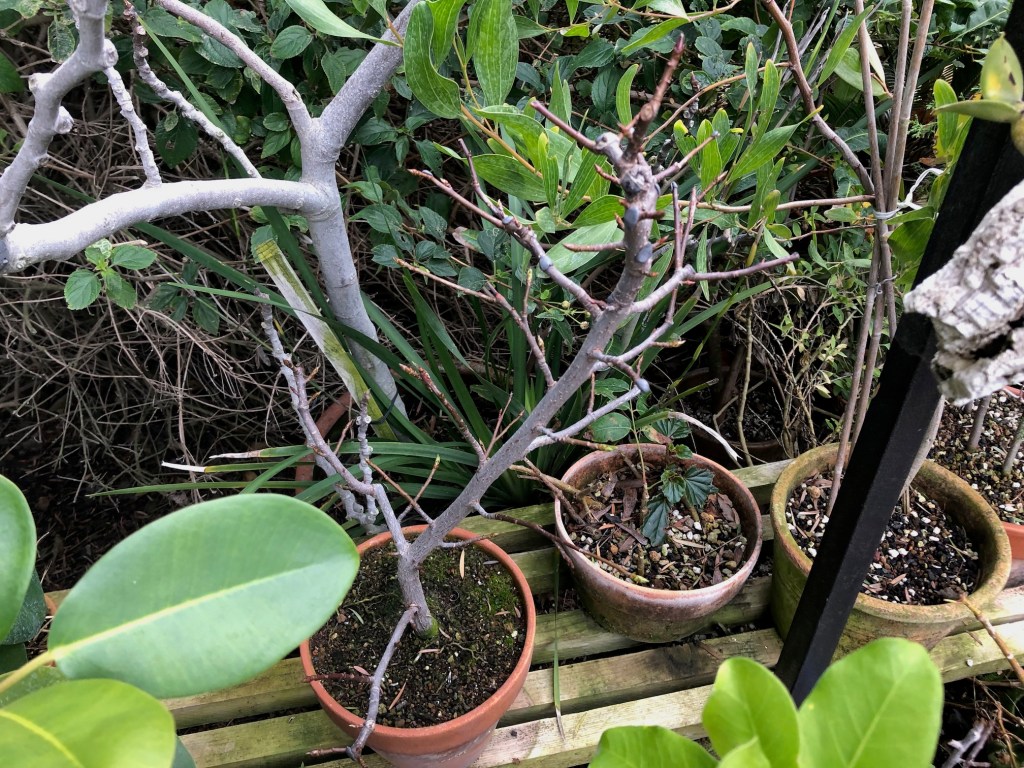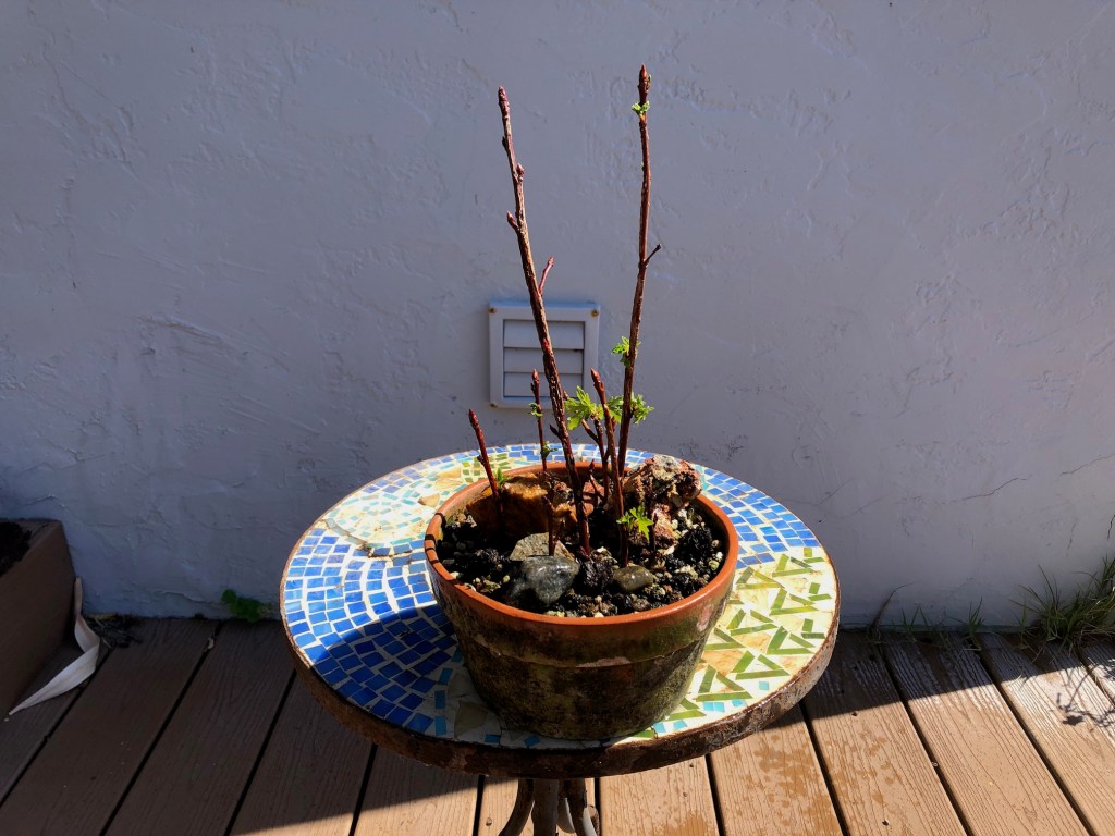 The mother tree and cuttings nearly a month later. Unfortunately, the cuttings died later that summer. I may not have been watering them enough.
