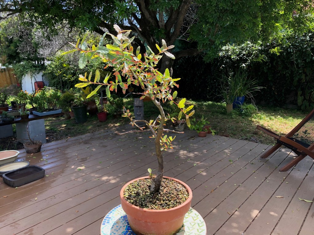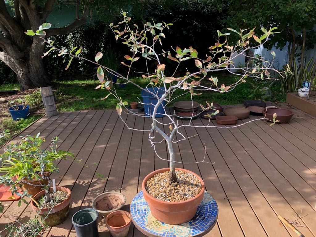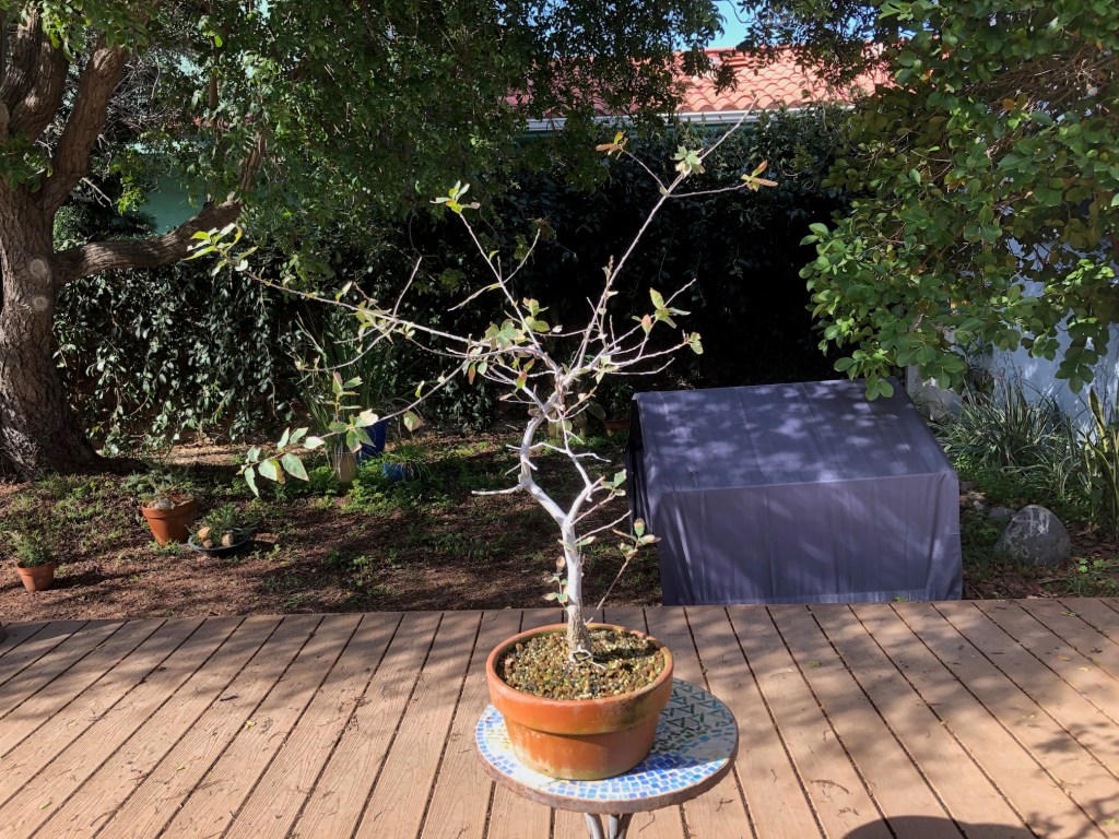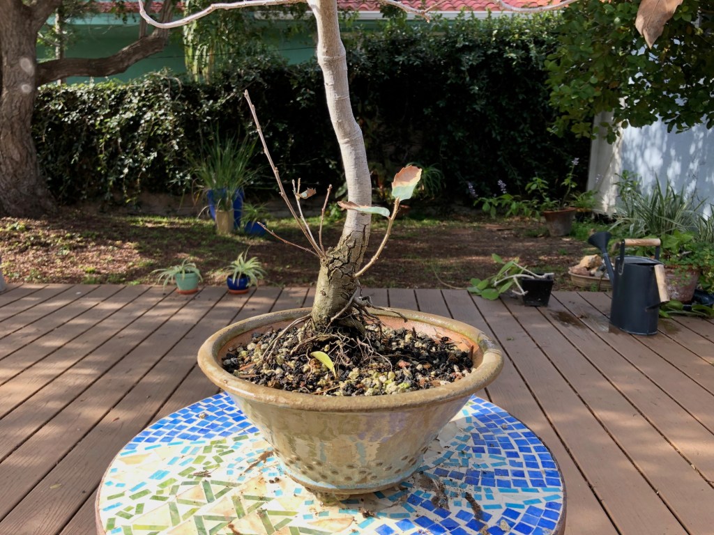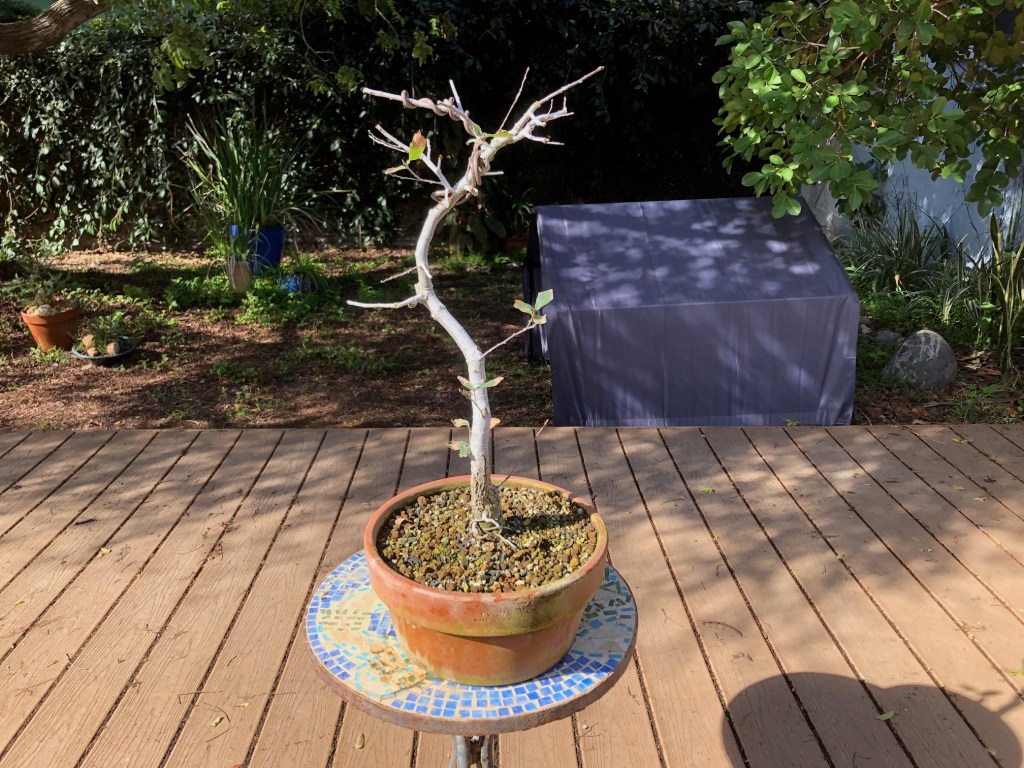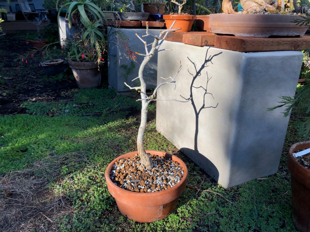 I bought this oak from the California Botanic Garden in Claremont, California on December 28, 2019. For a history of its development from then until April, 2022, see https://beginbonsai.net/2022/04/23/engelmann-oak-quercus-engelmannii/.