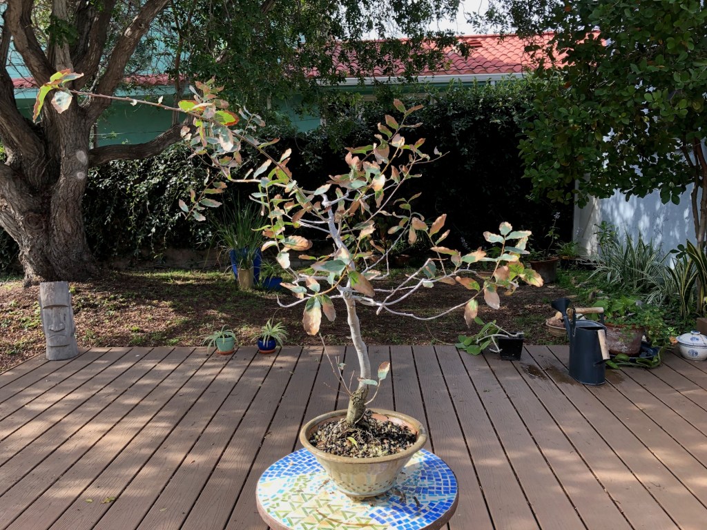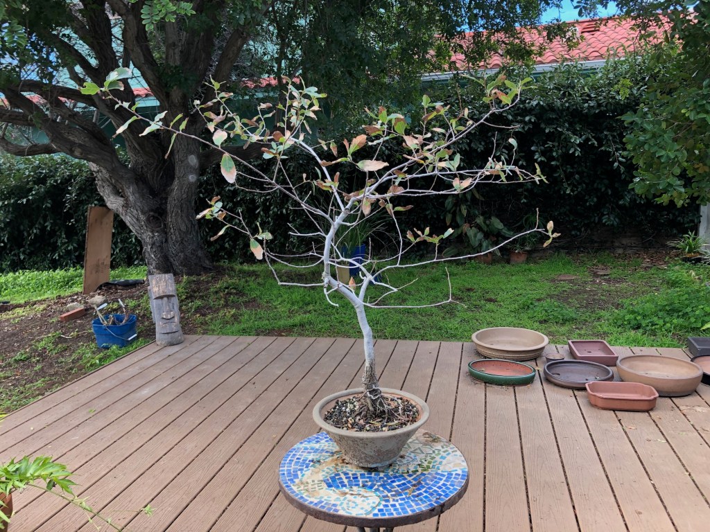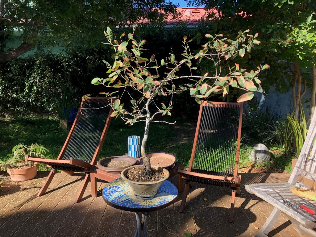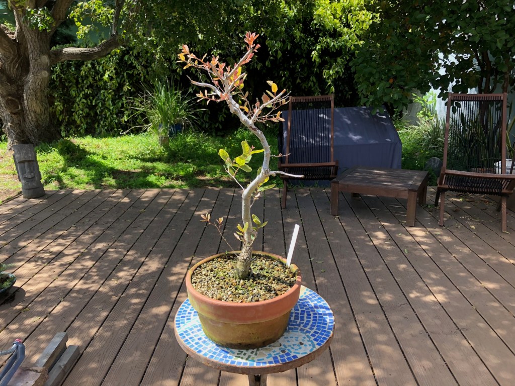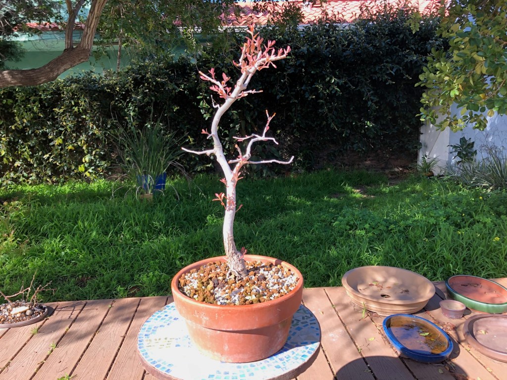 I bought this oak from the California Botanic Garden in Claremont, California on December 28, 2019. For a history of its development from then until April, 2022, see https://beginbonsai.net/2022/04/23/engelmann-oak-quercus-engelmannii/.